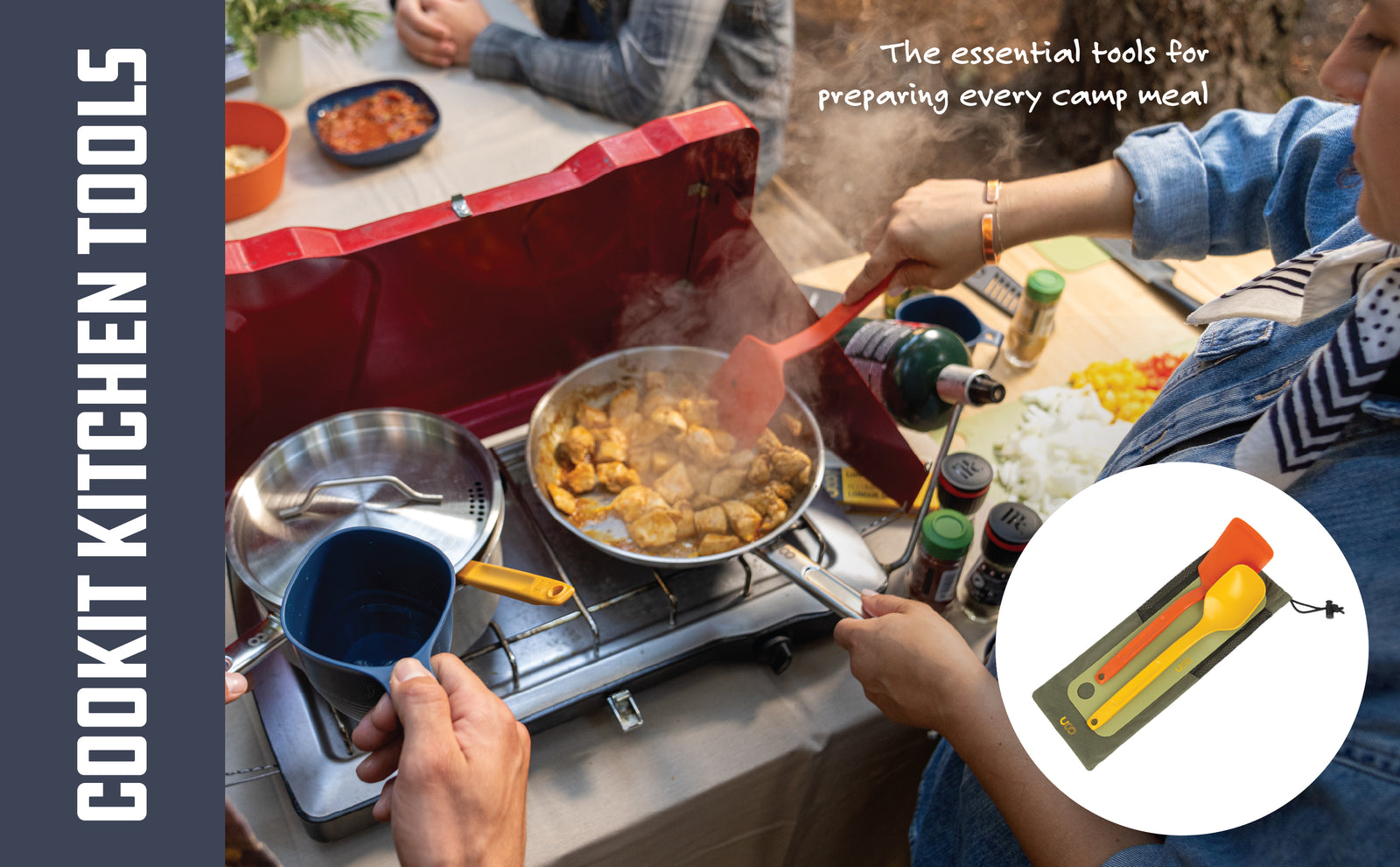 Our Cookit Kitchen Tools are part of our Cookit Camp Kitchen™-The Ultimate All-in-One Camping Cookware Kitchen Solution. With 47 carefully selected pieces, the Cookit Camp Kitchen™ lets you cook and create home-like meals at your campsite with ease. You can grab the Cookit Kitchen Tools alone or grab the Cookit Camp Kitchen™ -perfect for your next outdoor adventure!