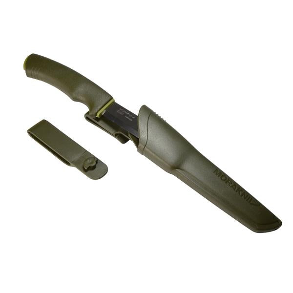 The Mora Bushcraft Forest is an all around version of the heavier Mora Bushcraft series, featuring a slightly thinner (2.5 mm), 4.3-inch (109 mm) profile-ground stainless steel blade. Green patterned grip and sheath. Mora Stainless steel options are ideally suited for marine, fishing, outdoor and construction applications, where knives see hard use and are commonly exposed to dirt and moisture. The chromium content of stainless steel makes them less susceptible to corrosion and oxidation than carbon steels, giving them a longer life overall.