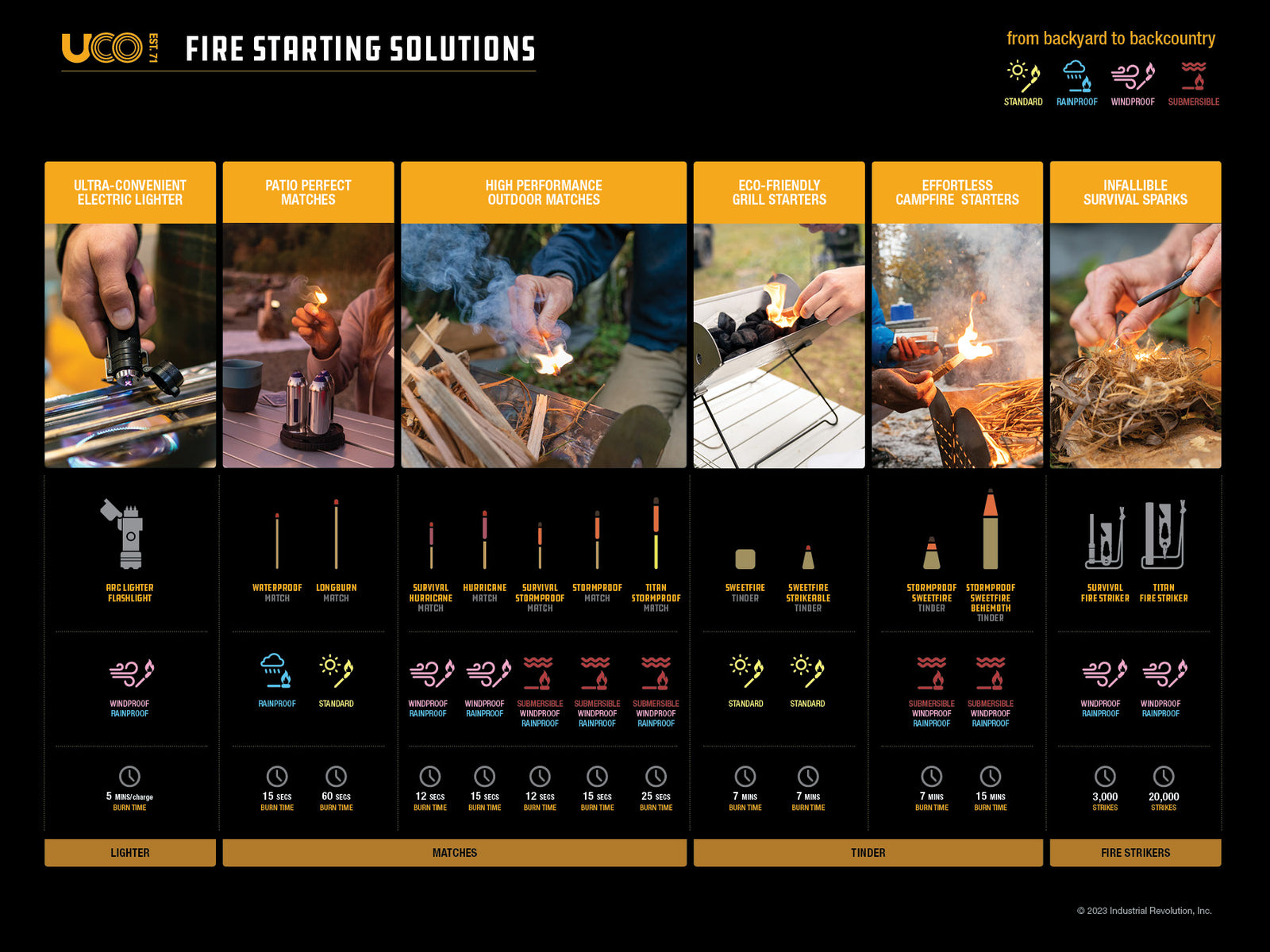 Our matches are built for reliability in any outdoor condition, from rain and wind to extreme storms. With options like waterproof, long-burn, and stormproof designs, they ensure you can start a fire no matter the environment. Explore our complete collection of matches and fire-starting tools below.