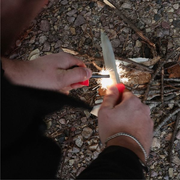 The Companion Spark Emergency (S) is a versatile survival knife, ready to handle emergencies or unexpected events during the adventure. With the 2.5 mm thick, partially serrated knife blade with rounded tip, you can cut efficiently and safely through ropes, smaller branches or clear obstacles. The handle is in visible red and orange, and has an integrated fire starter with reflective cord. A knife that fits perfectly in your emergency kit.