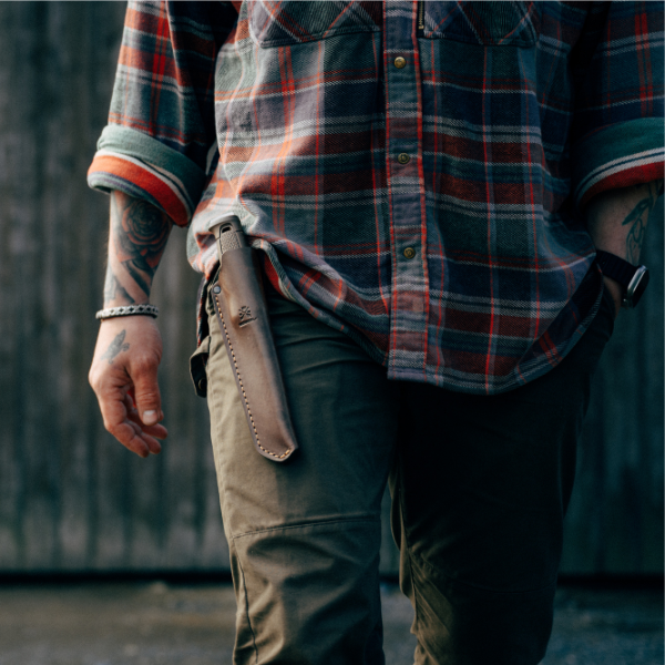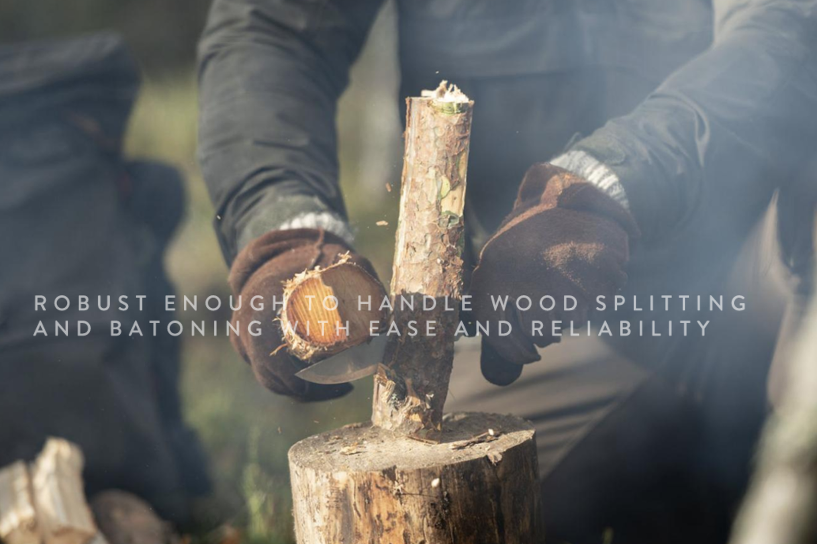 The slightly longer handle provides enhanced leverage and control, while the ergonomic shape ensures a secure grip even in wet or gloved conditions. Combined with its thicker spine and Scandi grind, the Grand delivers the balance of cutting precision and brute strength that bushcrafters demand.